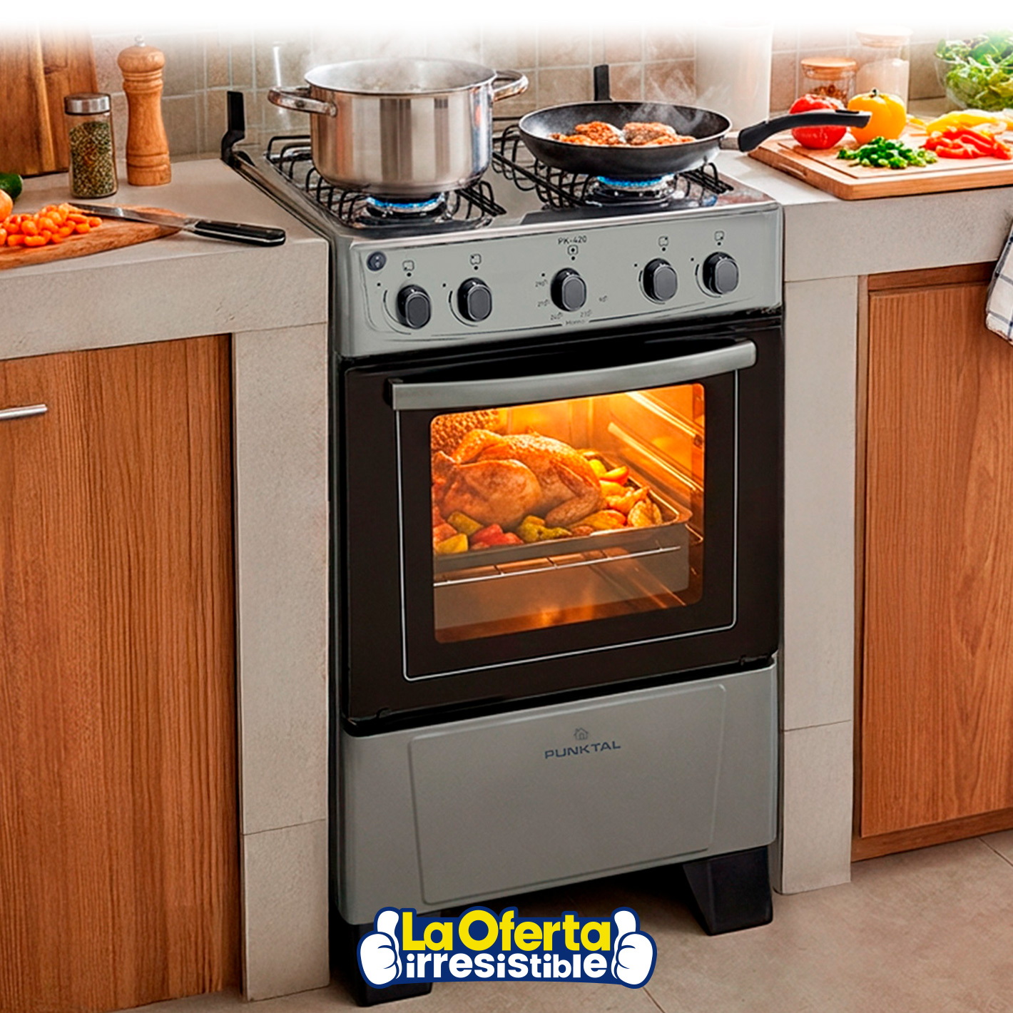 Cocina PUNKTAL Monaco Super Gas 4 Hornallas Encendido Electrónico Horno Limpieza Fácil