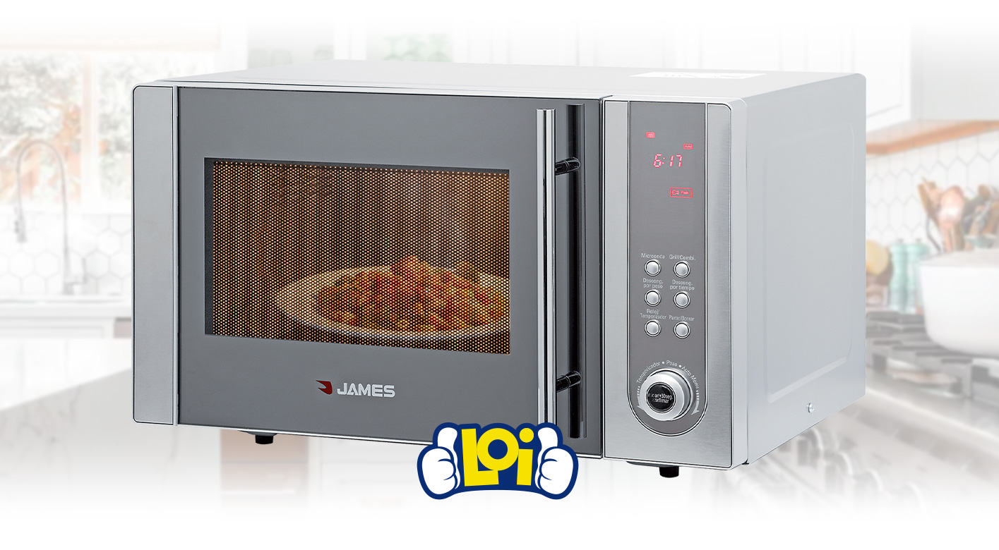 Este microondas James de 23 litros ofrece un uso práctico y eficiente gracias a su potencia de 800W, 5 niveles de potencia y 8 programas automáticos que facilitan la preparación de distintos alimentos. Incorpora un grill combinado de 1000W para dorar y gratinar, además de funciones de descongelado por peso y tiempo, garantizando resultados más precisos y rápidos en la cocina. Una opción versátil y funcional para el día a día.Disponible en: