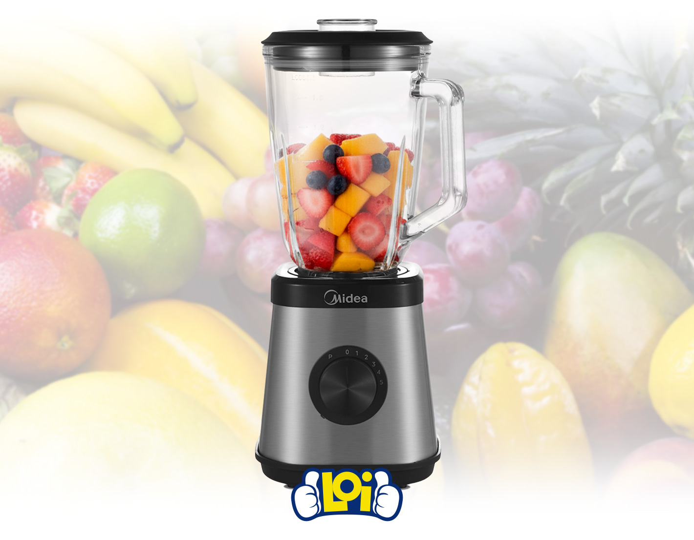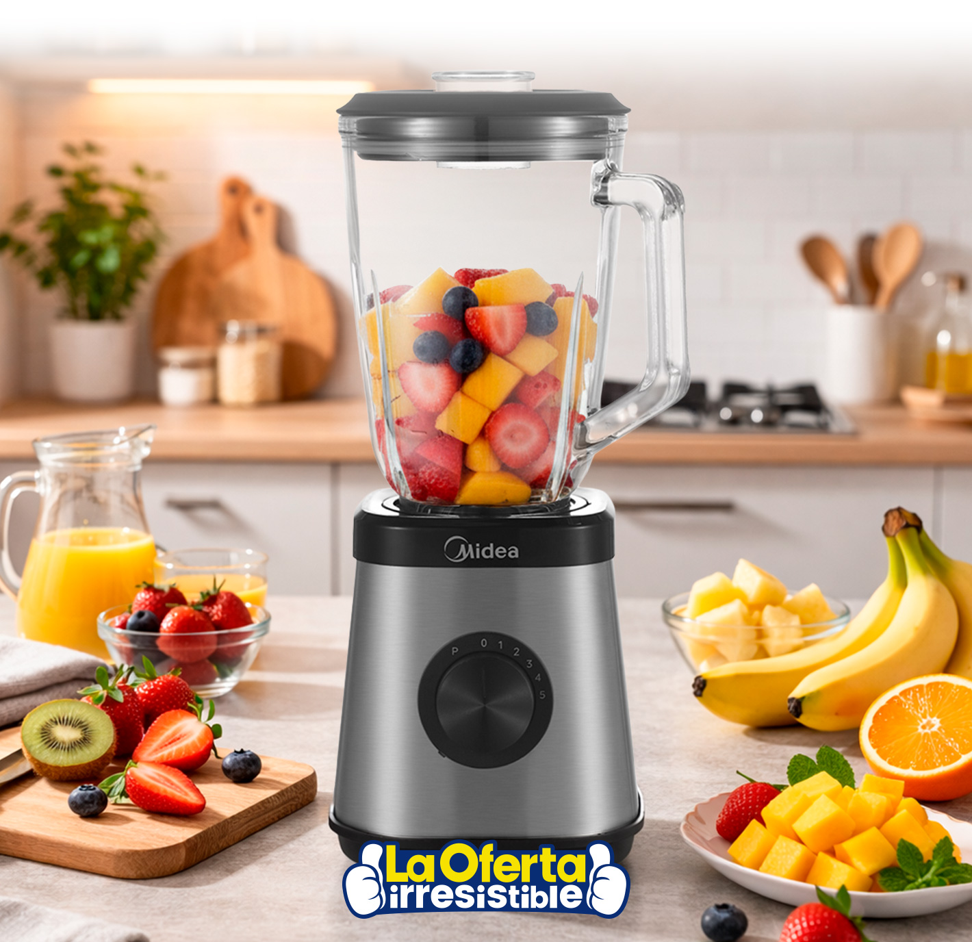 Licuadora MIDEA con 1000W de Potencia, Cuerpo de Acero Inoxidable y Jarra de 1.5L