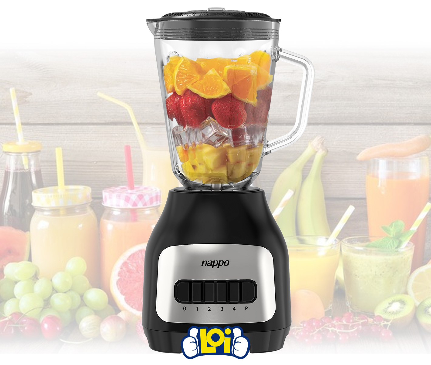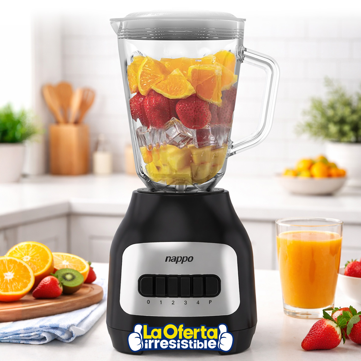 Licuadora NAPPO 600W de Potencia, 4 Velocidades + Pulso, Jarra de Vidrio de 1.5L
