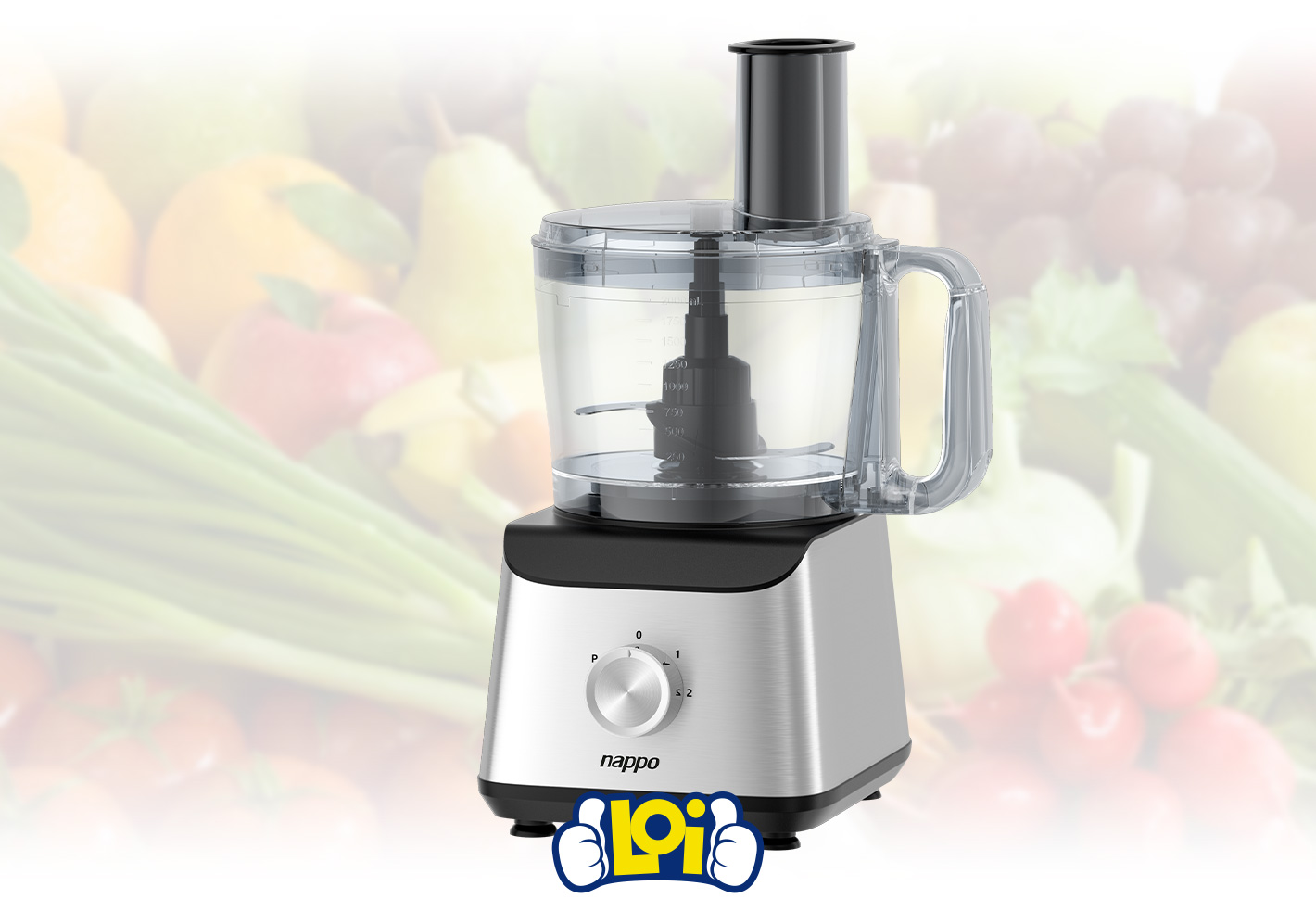 Multiprocesadora NAPPO 12 en 1 con 1500W de Potencia 2 Velocidades + Pulso con Jarra Licuadora de 2L y Accesorios