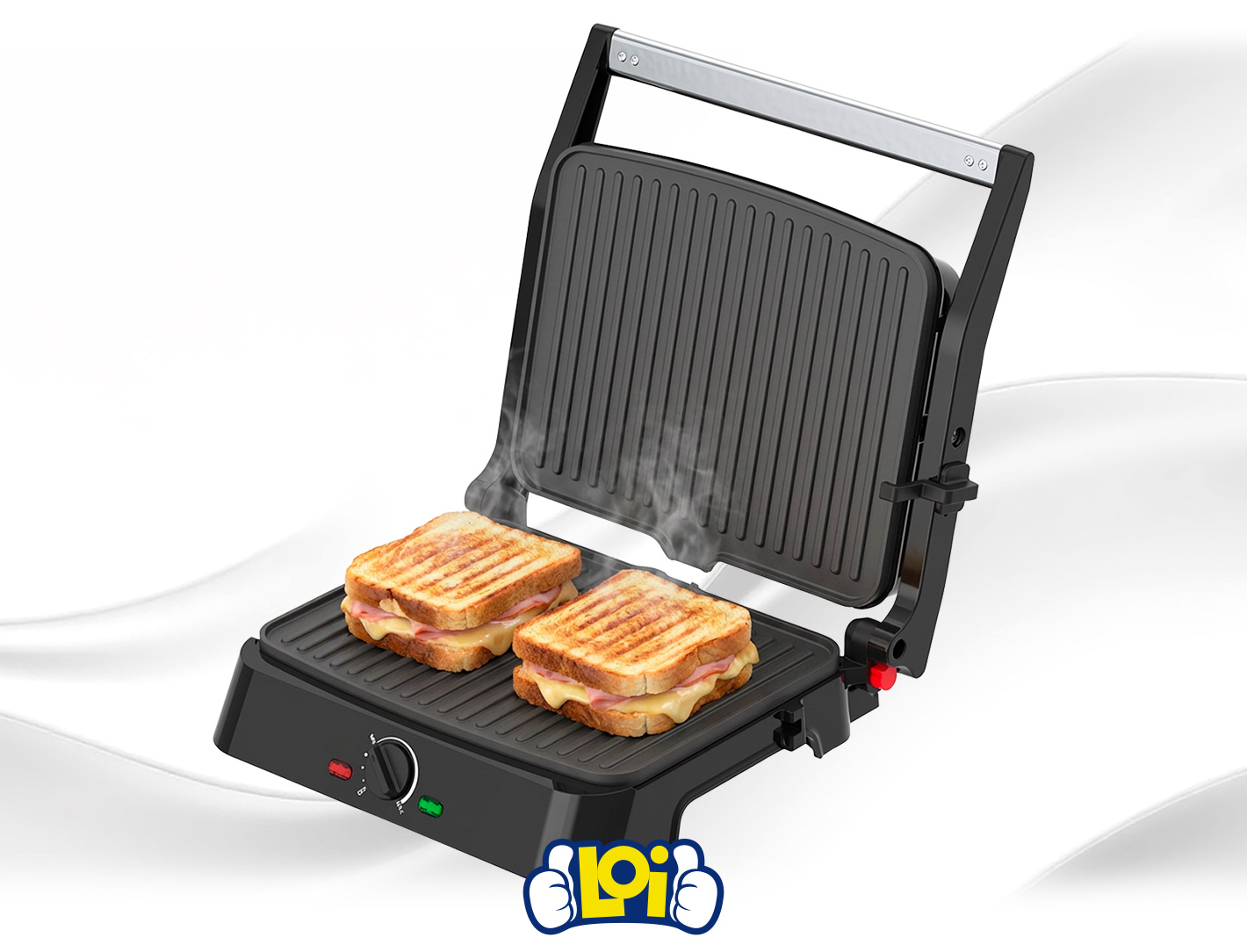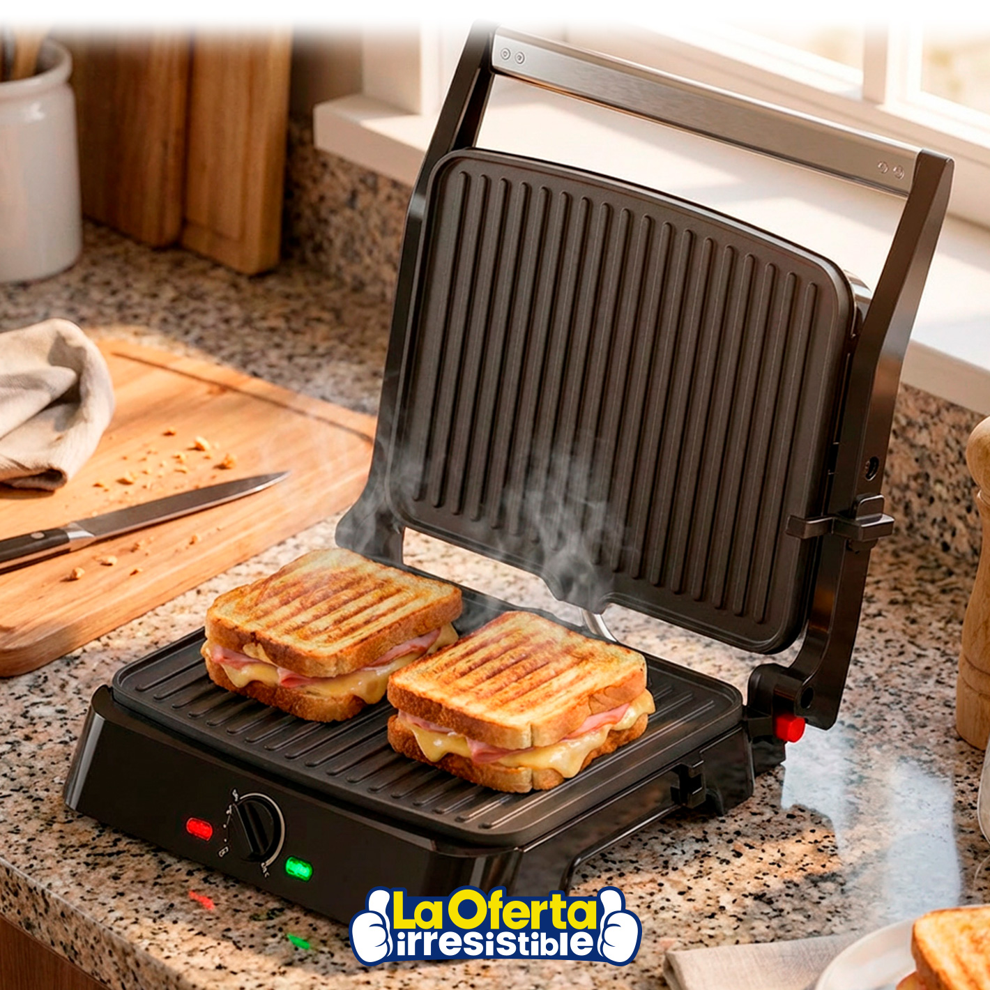 La Sandwichera Grill Doble NAPPO de 1800W combina rapidez y practicidad en un diseño moderno de acero inoxidable. Su superficie antiadherente y apertura de 180° te permite grillar sándwiches, carnes, chivitos, hamburguesas y verduras con facilidad. La bisagra flotante se adapta al grosor de cada preparación, y el control de temperatura te da la cocción justa. Con bandeja de goteo extraíble, mango Cool-Touch y base antideslizante, es una opción segura, potente y fácil de limpiar para el uso diario.Disponible en: