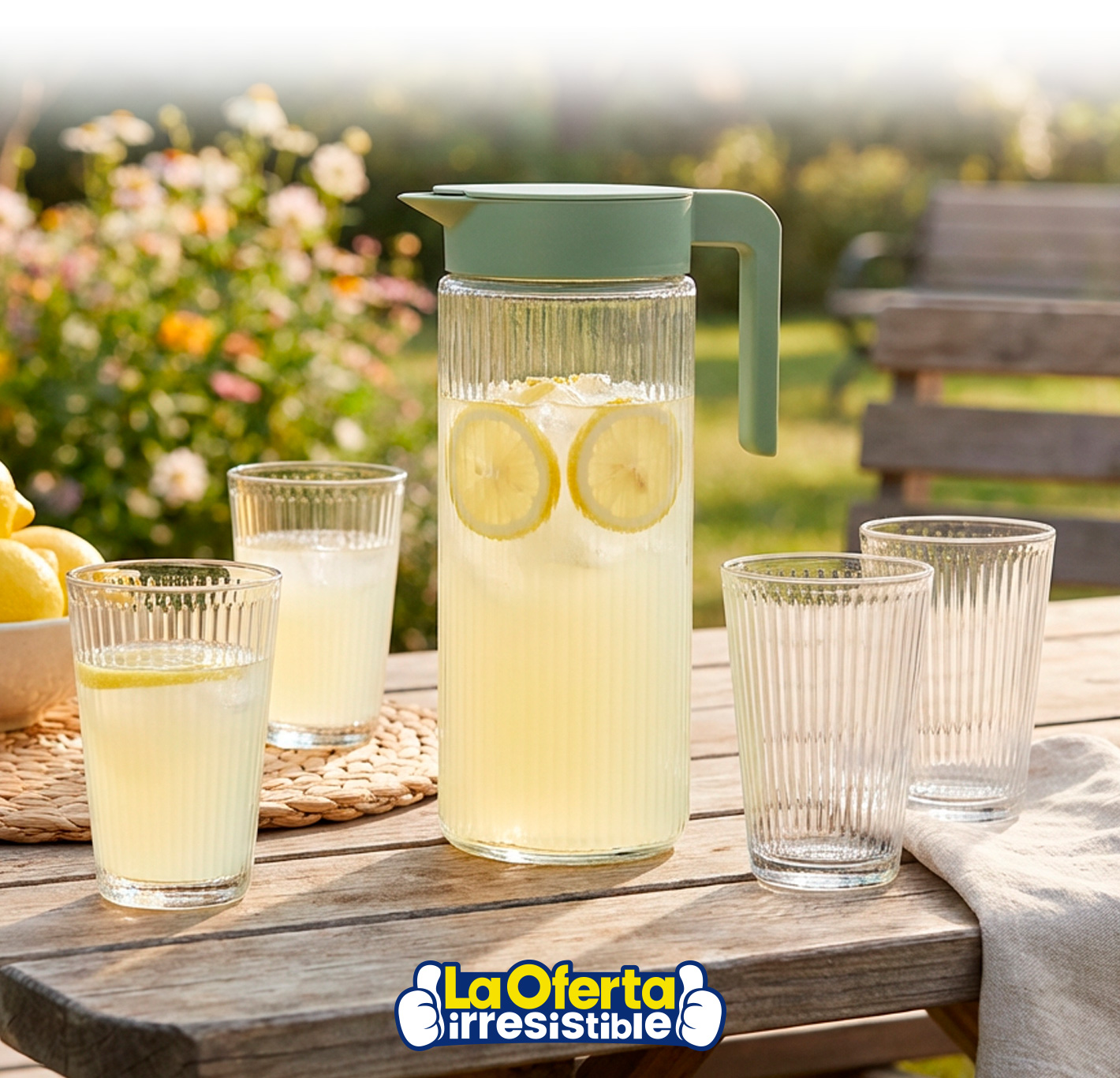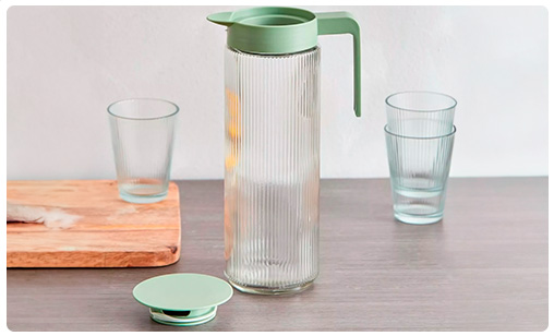 Este set de jarra y 4 vasos es perfecto para cualquier ocasión, desde reuniones familiares hasta cenas especiales. La jarra de 1 litro, junto con los vasos de 300ml, ofrece la capacidad ideal para servir una amplia variedad de bebidas como té helado, limonada, jugos o cócteles. Fabricados en vidrio resistente, garantizan durabilidad y elegancia, mientras que la tapa plástica con sistema de vertido seguro evita derrames y mantiene las bebidas protegidas. Su diseño moderno y sofisticado aporta un toque distintivo y decorativo a cualquier mesa, combinando funcionalidad y estilo.Podés canjear este artículo usando tus Metros OCA