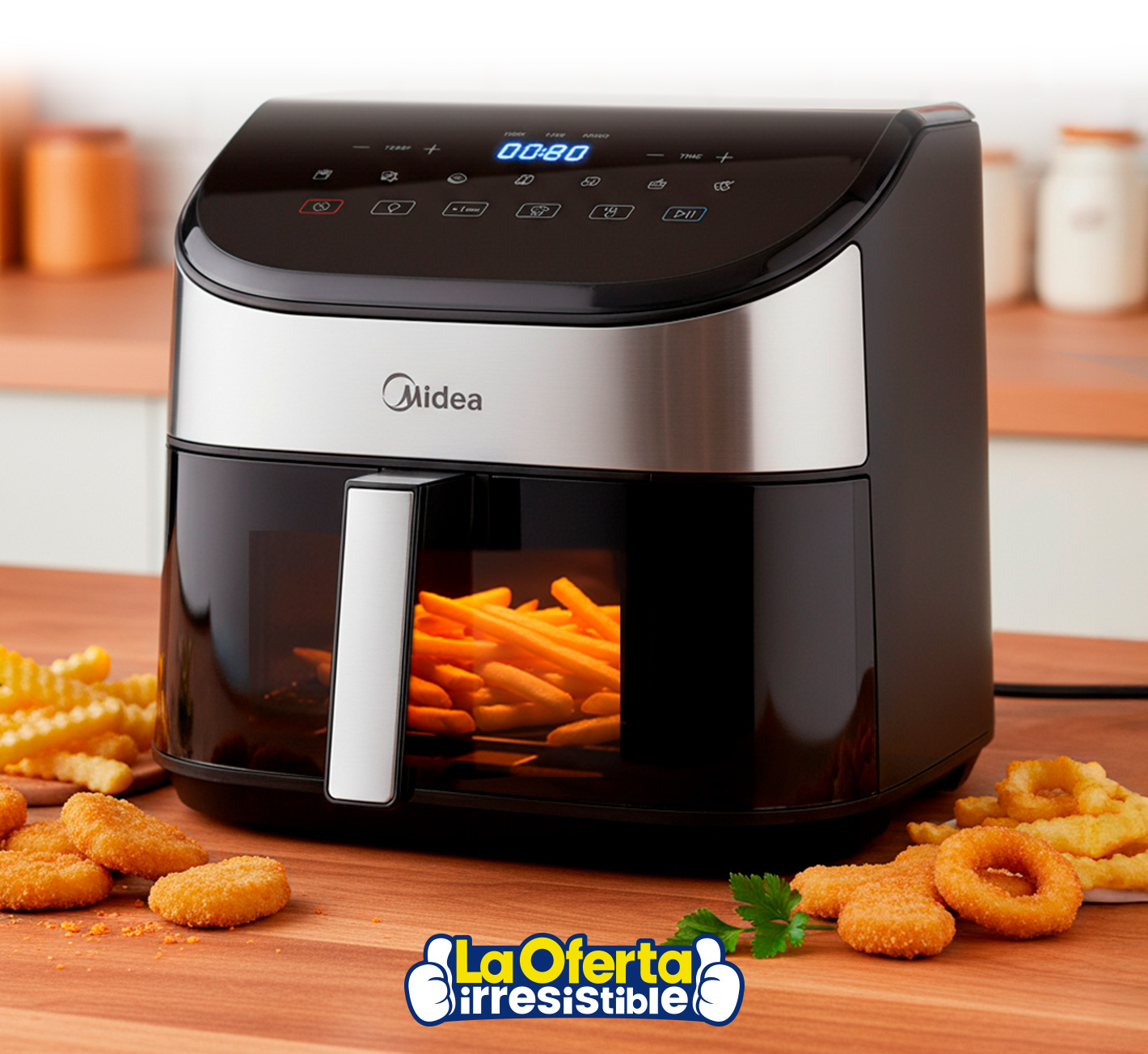 Freidora sin Aceite MIDEA Digital de 5.5L 2250W Panel Táctil y Visor Transparente con Luz