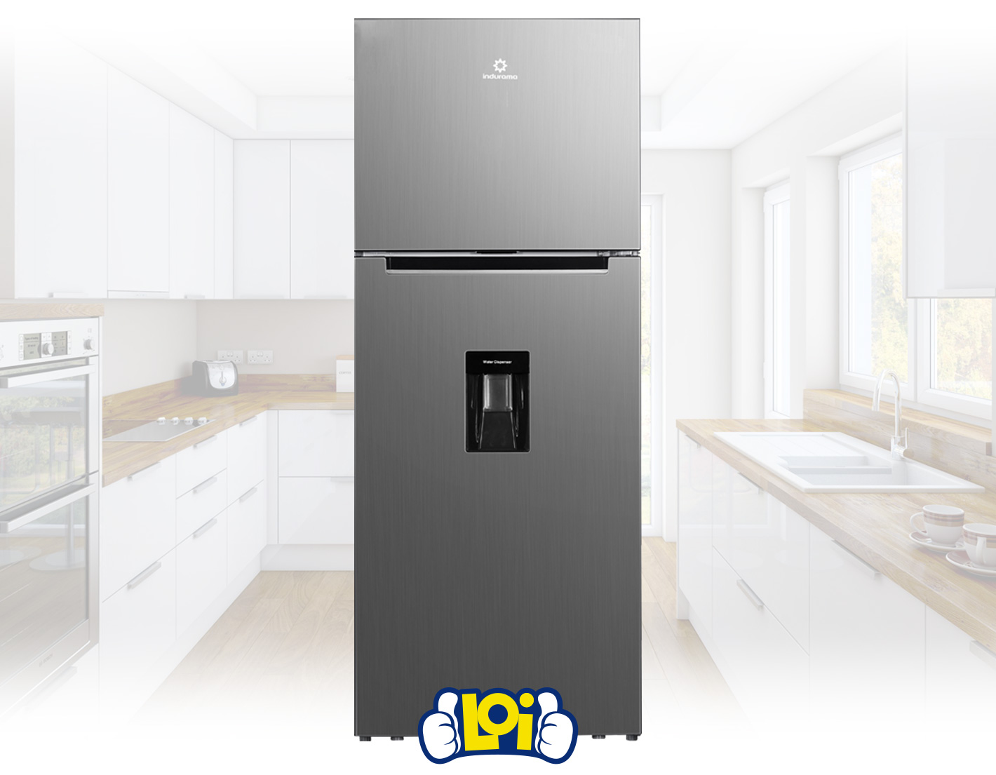 Refrigerador INDURAMA Inox 446L Frío Seco, Sistema No Frost, Dispensador de Agua, Puerta Rebatible, Eficiencia Energética A