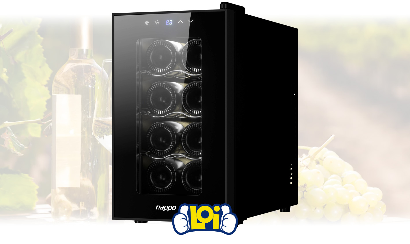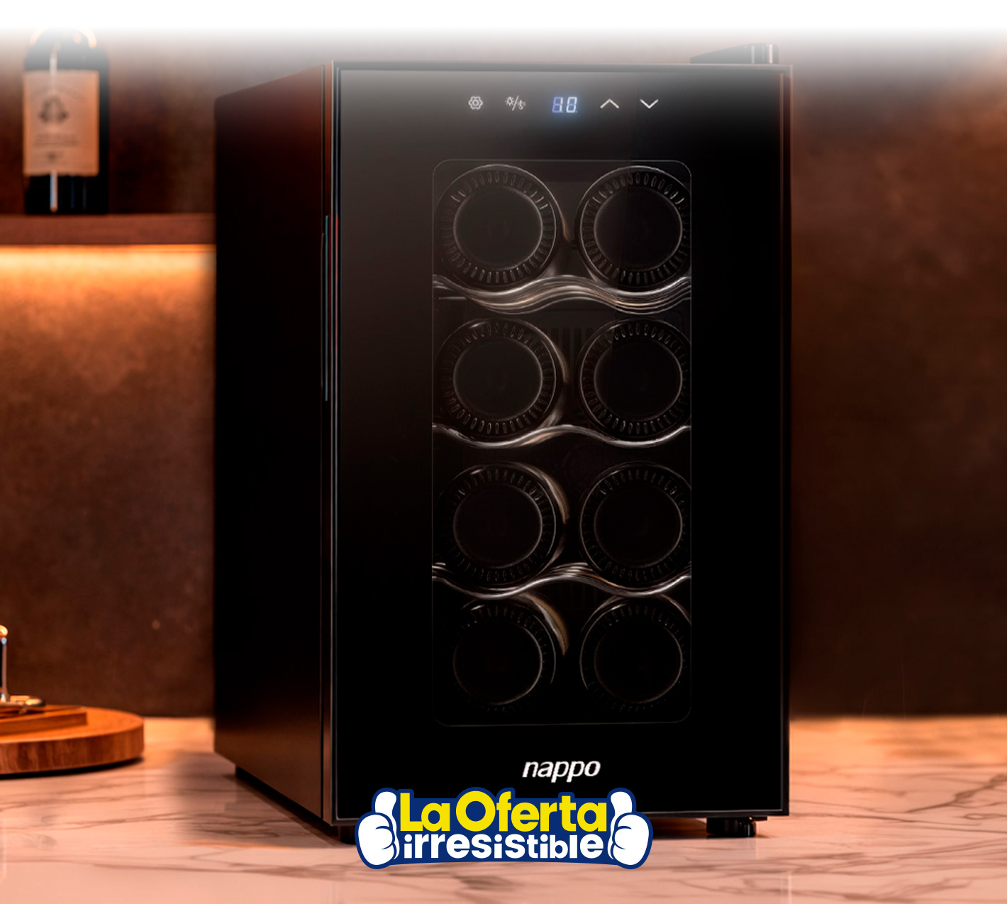 Enfriadora de Vinos NAPPO Vinera con 58W de Potencia y Capacidad para 8 Botellas, con Control Digital