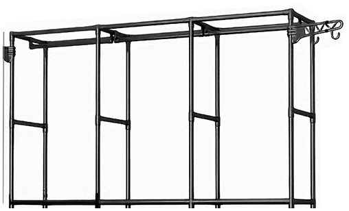 Ropero Abierto DecoTeam Metálico con Perchero Triple, 8 Estantes y Ganchos Laterales, 162x43x175cm