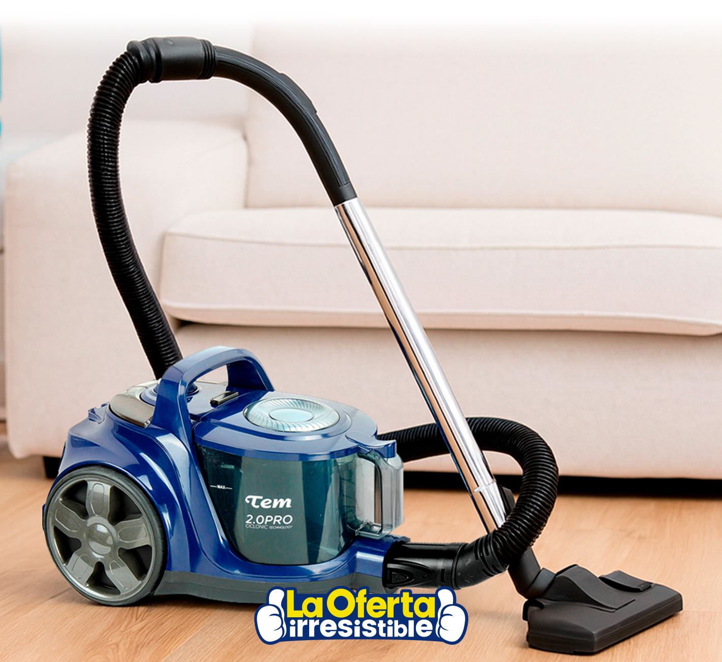 La aspiradora ciclónica Tem de 1800W de potencia combina fuerza y practicidad para una limpieza profunda y sin esfuerzo. Equipada con regulador de potencia para adaptarse a cada superficie, incorpora un depósito extraíble transparente que facilita el vaciado sin necesidad de bolsas. Su cable de 4,8 metros con sistema de enrollado automático y la manguera flexible con giro de 360º ofrecen un amplio radio de acción y comodidad en cada movimiento. Incluye dos tubos de acero inoxidable de largo alcance y un cepillo 2 en 1, ideales para acceder a rincones difíciles. Además, su filtro HEPA garantiza un aire más limpio reteniendo el polvo y los alérgenos. Una solución moderna, eficiente y práctica para mantener tu hogar impecable.Disponible en: