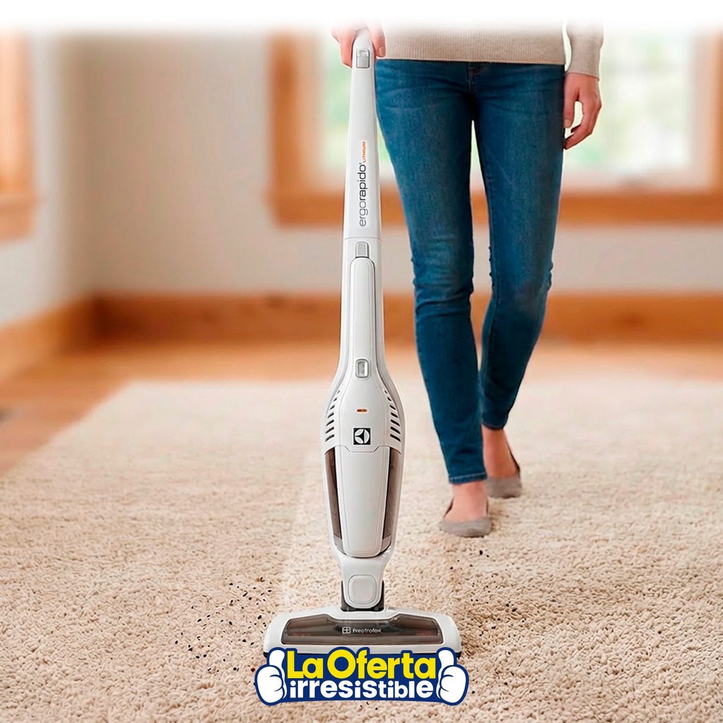 La Aspiradora Electrolux 2 en 1 inalámbrica ofrece una limpieza práctica y eficiente, con un diseño versátil que permite usarla como aspiradora vertical o de mano. Es ideal para limpiar distintos ambientes del hogar y el interior del auto. Su tecnología Cyclone y sus dos velocidades aseguran una succión constante. La batería de litio con indicador LED brinda autonomía para el uso diario, mientras que el sistema sin bolsa, la maniobrabilidad 180° EasySteer y el triple filtrado garantizan una limpieza cómoda, eficaz y un aire más saludable.Disponible en: