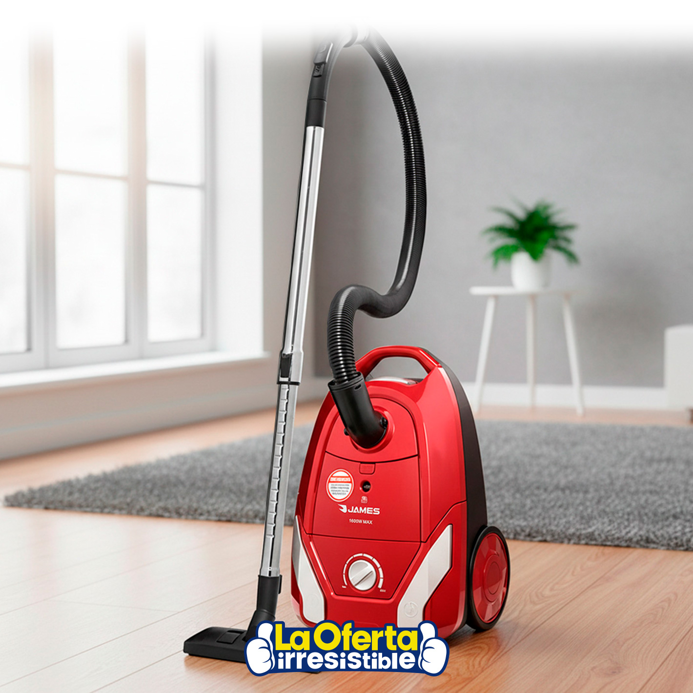 La Aspiradora James 1600W está diseñada para limpiar a fondo sin complicaciones. Su motor potente y sus 2L de capacidad permiten trabajar con comodidad en espacios amplios, manteniendo siempre un rendimiento estable. El control de potencia regulable y el sistema de bolsa tela o papel te dan flexibilidad según cada tarea. Incluye accesorios esenciales para llegar a rincones, tapizados y superficies amplias, mientras que su tubo metálico telescópico y el cable retráctil mejoran la experiencia de uso. Es una aspiradora robusta, práctica y pensada para quienes buscan eficiencia con buena autonomía.Disponible en:
