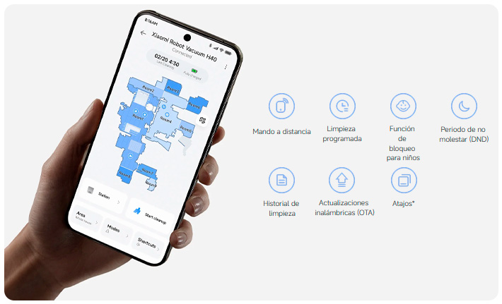 La aspiradora robot Xiaomi H40 ofrece una limpieza inteligente, potente y sin enredos gracias a su tecnología antienredos multidimensional, capaz de eliminar eficazmente el pelo en solo cinco pasos. Con un poder de succión de hasta 10000Pa y depósito de agua de 210ml garantiza una limpieza profunda en todo tipo de superficies. Su sistema de navegación LDS crea mapas 3D de alta precisión, permite limpiar por zonas, alrededor de muebles y personalizar alfombras desde la app Xiaomi Home. Además, su bolsa de polvo de 4L ofrece hasta 90 días de uso sin vaciado, mientras que su batería de 5200mAh brinda hasta 180 minutos de autonomía. Compatible con Alexa y Google Assistant, combina diseño compacto, control remoto y máxima comodidad para un hogar siempre limpio.Disponible en: