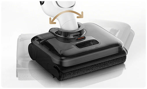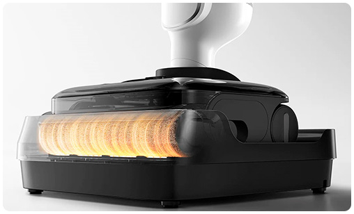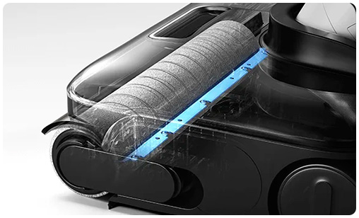 - Con una combinación de aspirado, fregado y limpieza del cepillo de rodillo a la vez, cuenta con un sistema de agua limpia en tiempo real para eliminar el pelo, las partículas y las manchas difíciles de forma simultánea, lo que acaba con las molestias de la rutina tradicional de aspirado antes de fregar.