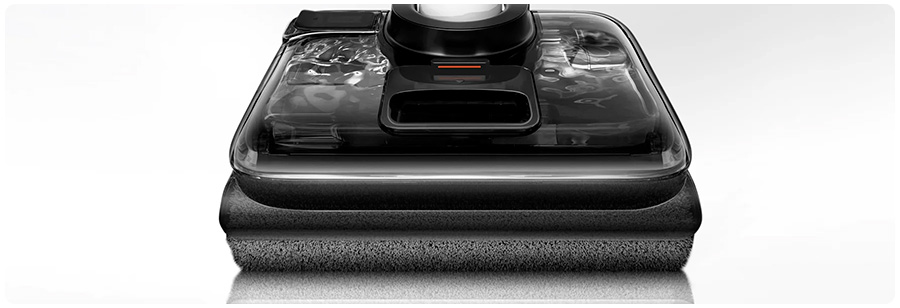 - La tecnología de separación activa de agua y aire permite que la aspiradora permanezca plana, manteniendo la máxima potencia de succión y sin reducir la capacidad útil del depósito de agua sucia.