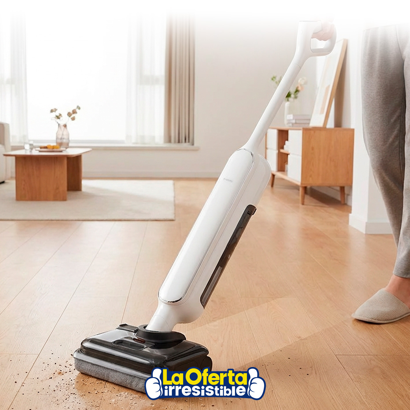 La Aspiradora Xiaomi Truclean W30 Pro Wet Dry es una solución avanzada para una limpieza completa del hogar, combinando funciones de aspirado y fregado en un solo equipo. Su succión turbo de 18000Pa garantiza un alto rendimiento, mientras que el sistema antienredos de 4 etapas captura y elimina el cabello sin obstrucciones. Cuenta con modos de limpieza para residuos secos, líquidos y suciedad persistente, adaptándose a distintas necesidades, e incorpora un sistema que aspira, friega y limpia el rodillo simultáneamente para mayor eficiencia. Además, utiliza agua caliente para eliminar suciedad y olores, y su diseño flexible de 180° permite acceder fácilmente a zonas bajas como debajo de muebles. Incluye secado del rodillo con rotación de 360°, una batería de 4000mAh y hasta 40 minutos de autonomía, ofreciendo practicidad y rendimiento en cada uso.Disponible en: