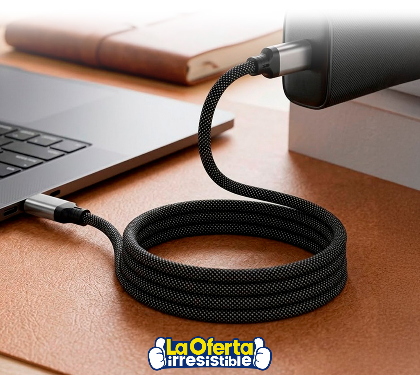 Este cable magnético USB-C a USB-C ofrece una solución práctica y eficiente para cargar y sincronizar tus dispositivos. Con potencia de hasta 60W, permite una carga rápida y estable, ideal para smartphones, tablets y otros dispositivos compatibles con puerto USB-C. Su diseño con conector magnético facilita la conexión y ayuda a proteger el puerto del dispositivo, brindando mayor comodidad en el uso diario. Además, cuenta con un revestimiento trenzado y conectores de aleación de aluminio, que aportan mayor resistencia, durabilidad y un mejor rendimiento en la transmisión de datos.Podés canjear este artículo usando tus Metros OCA
