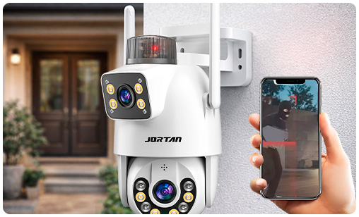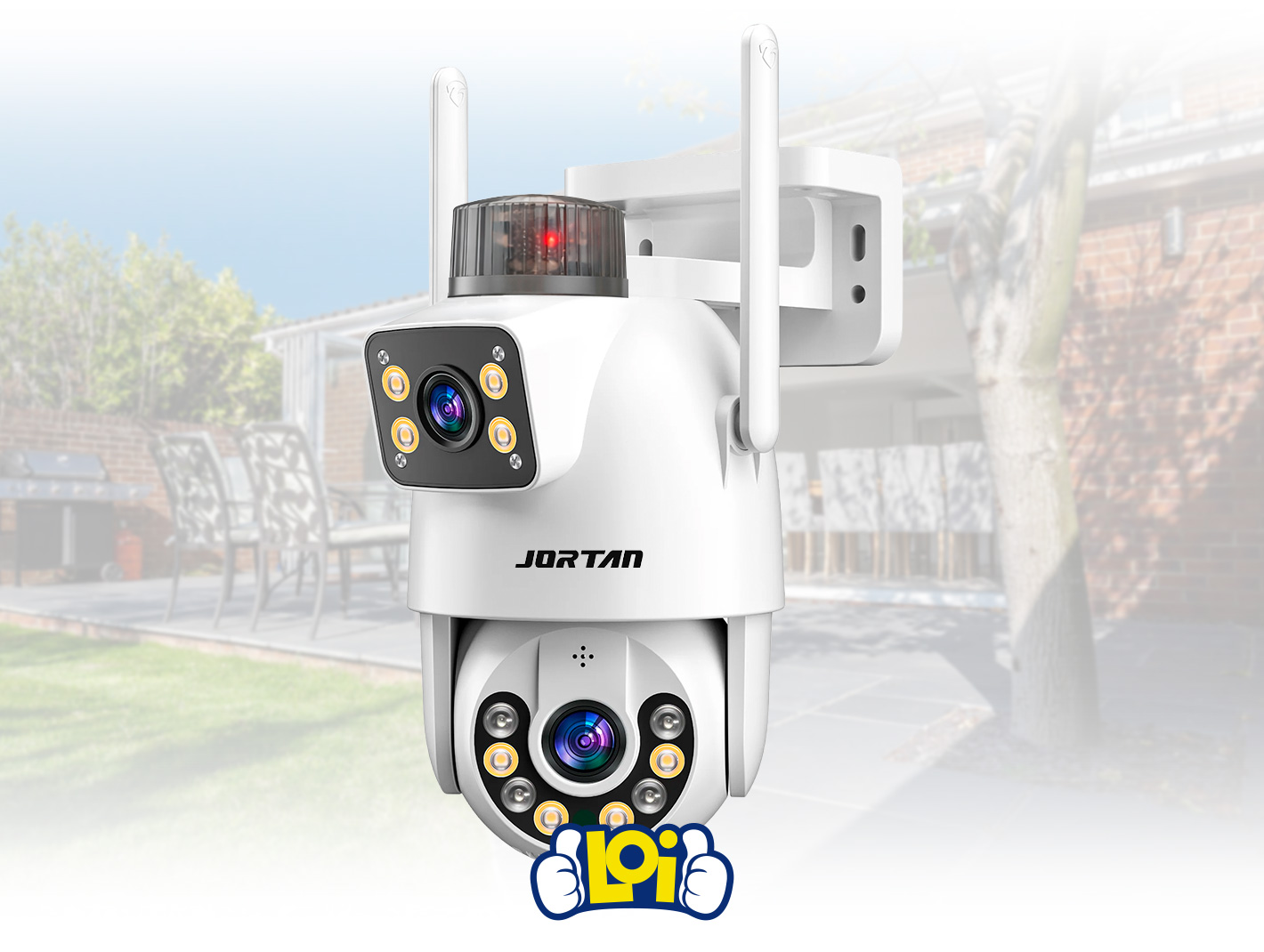 Cámara de Seguridad JORTAN Motorizada PTZ 355º con Doble Lente 5.0MP, Visión Nocturna A COLOR, Protección IP66, Inalámbrica WIFI App Yoosee