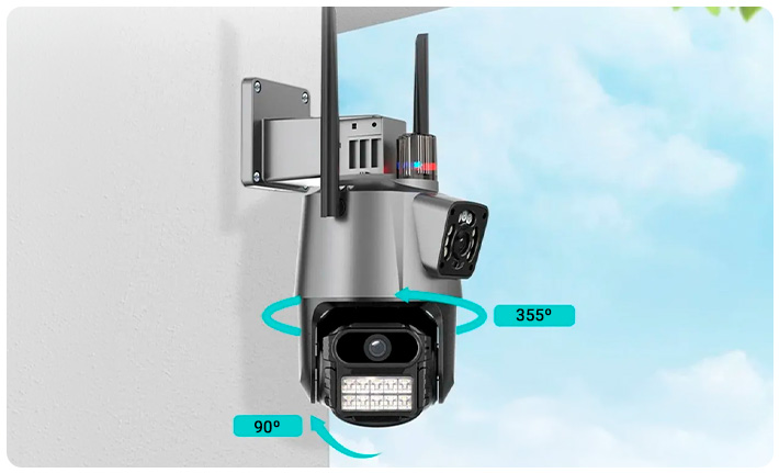 Cámara de Seguridad JORTAN Motorizada PTZ 355º con Doble Lente 6.0MP, Visión Nocturna A COLOR, Protección IP66, Inalámbrica WIFI App ICSee