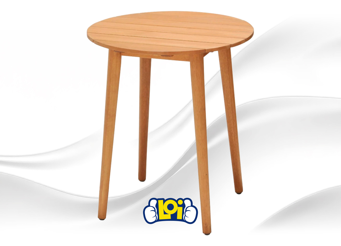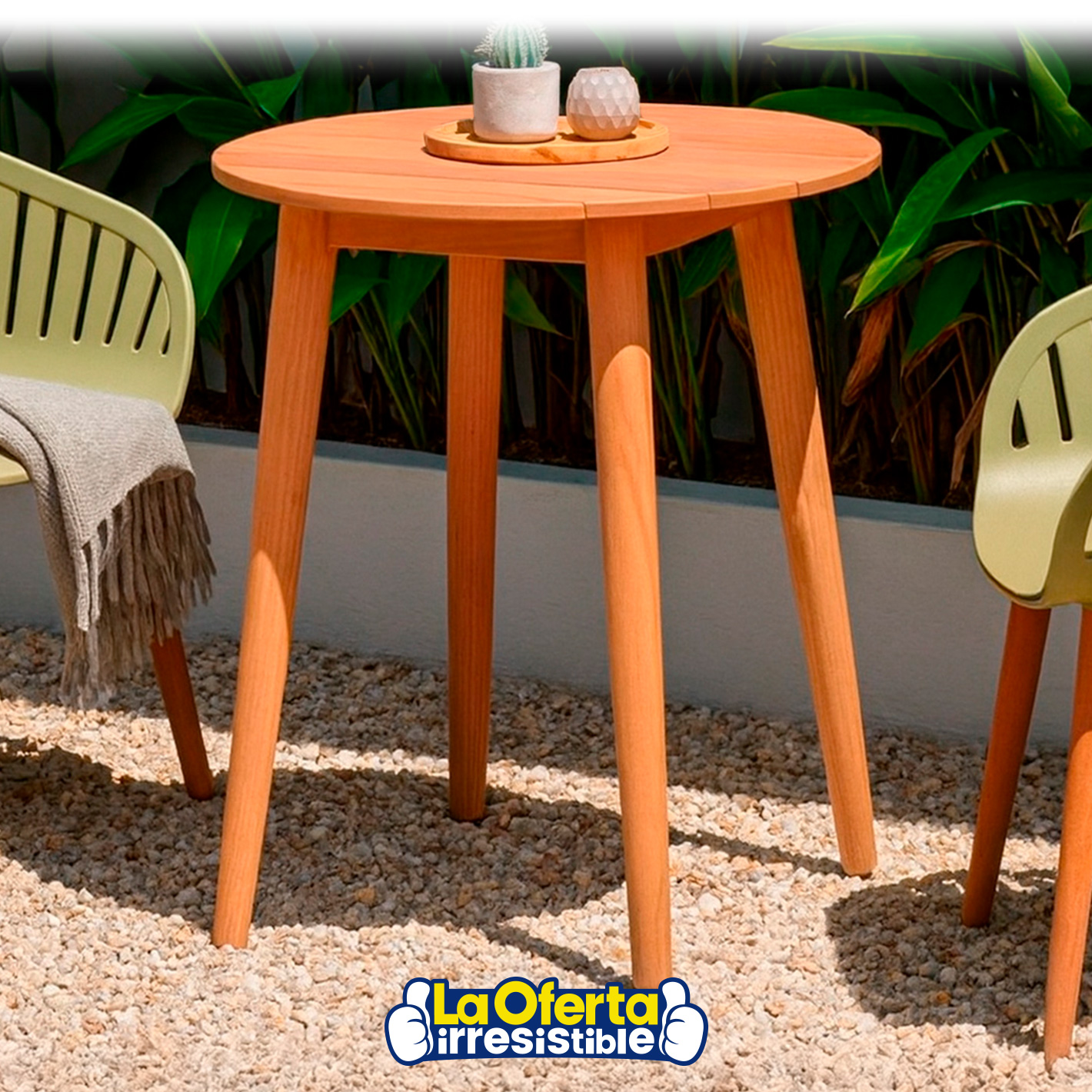 Mesa Redonda de Madera Maciza de Eucaliptus, Apta para Exterior - 75 x 65 x 65cm