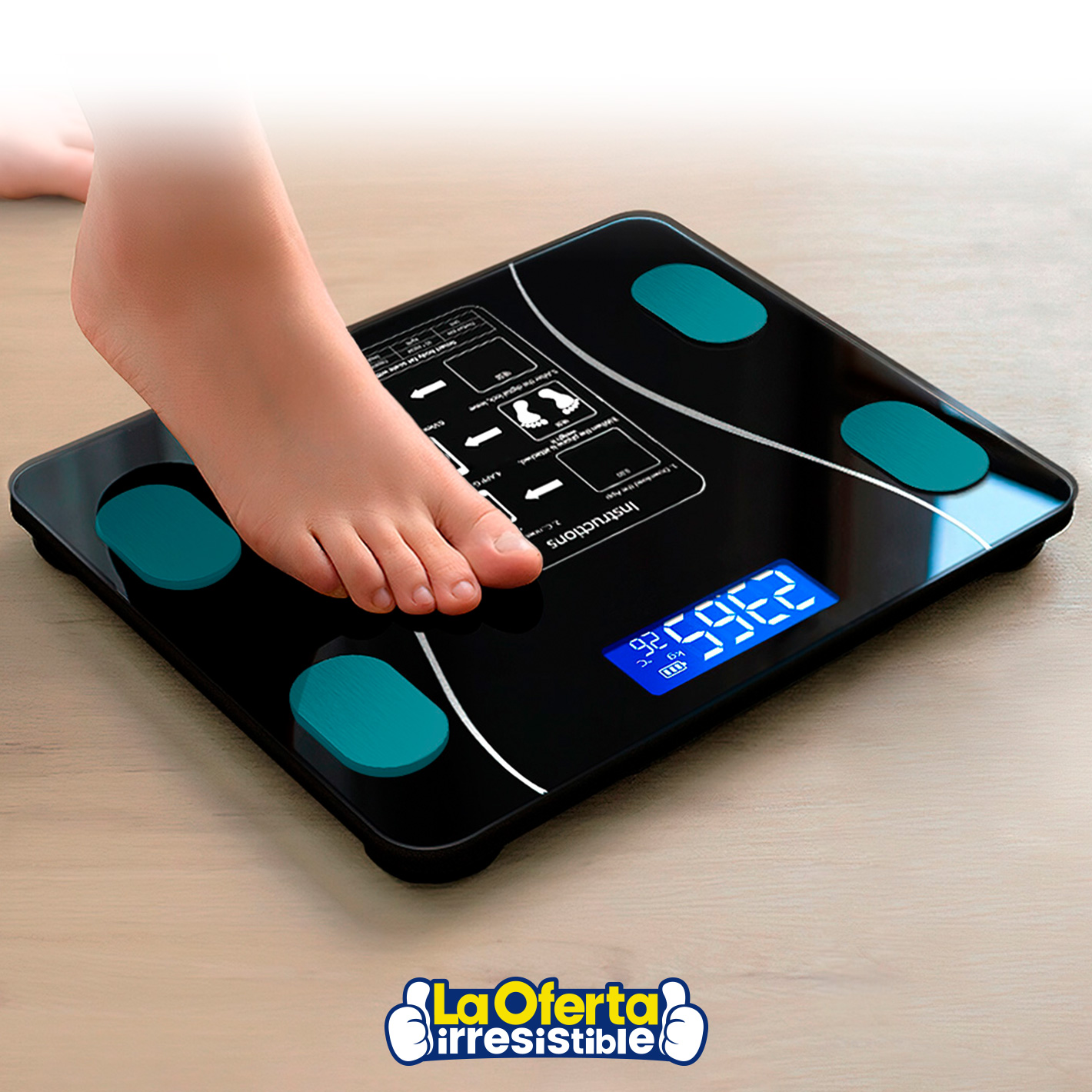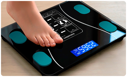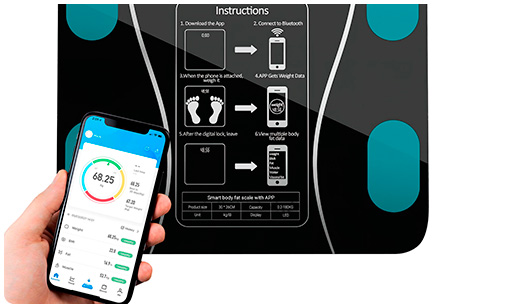 Los datos se pueden obtener subiéndote a la balanza con ambos pies. Conectate a la app y todos los datos se sincronizarán automáticamente.