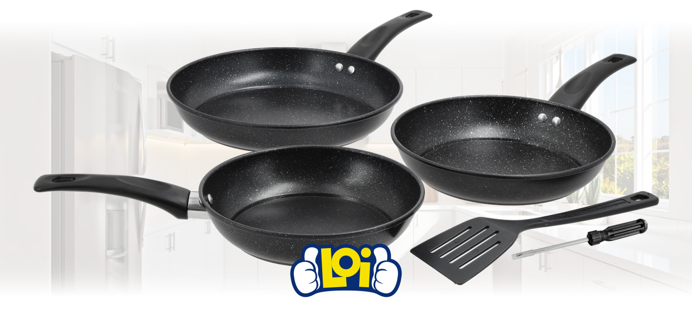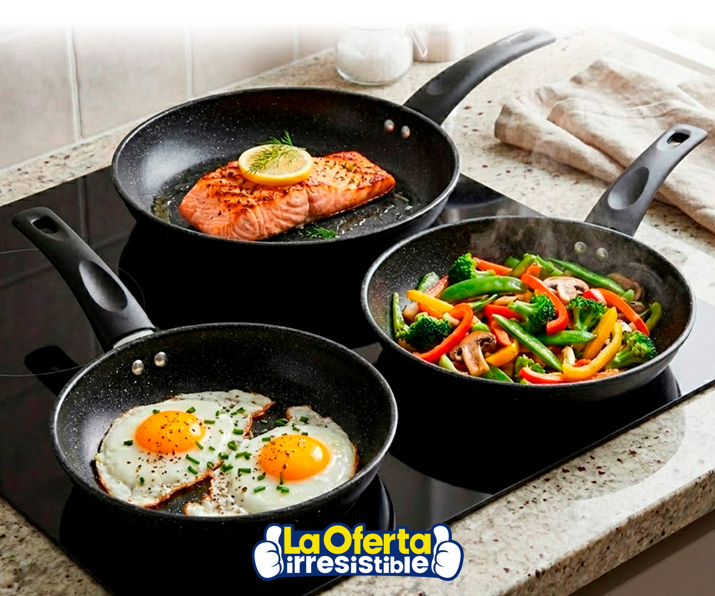 Set de Sartenes Antiadherentes de 22, 24 y 28cm, con Espátula y Destornillador