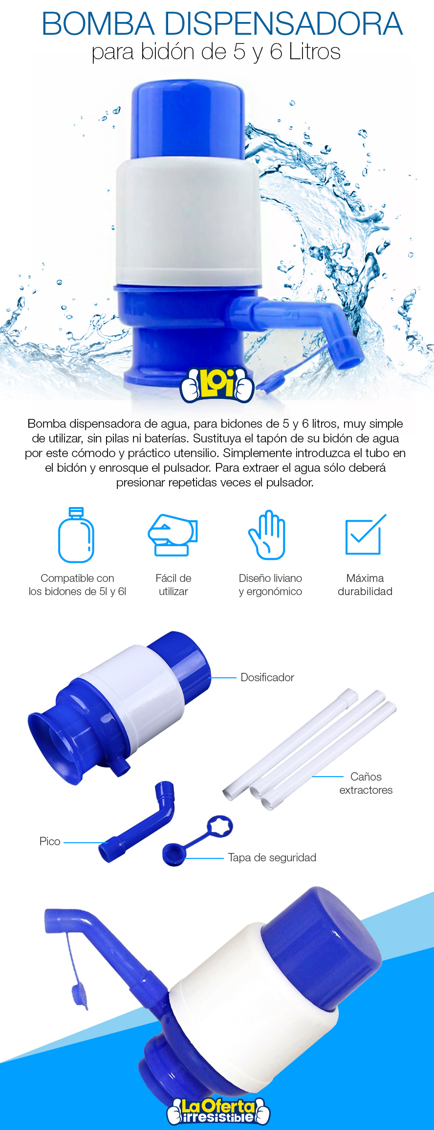 Bomba Manual Dispensadora para Bidones de 5 y 6 Litros