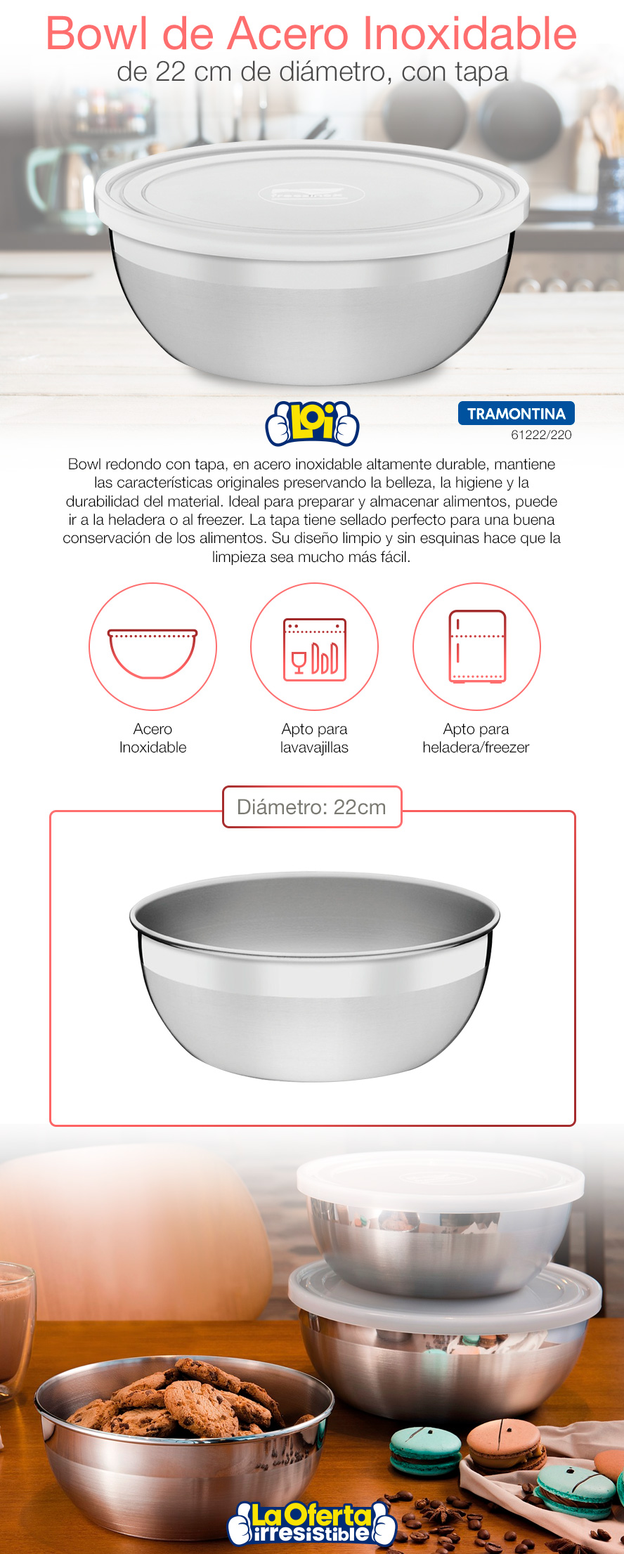 Bowl de Acero Inoxidable con Tapa 22cm 2.8L Tramontina 61222/220