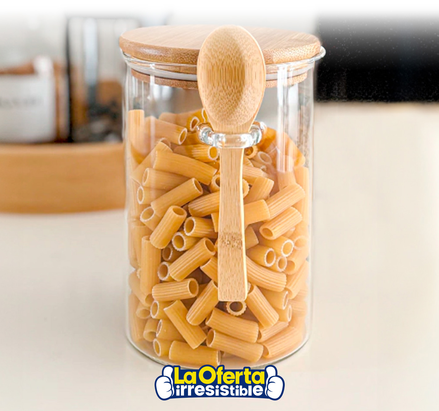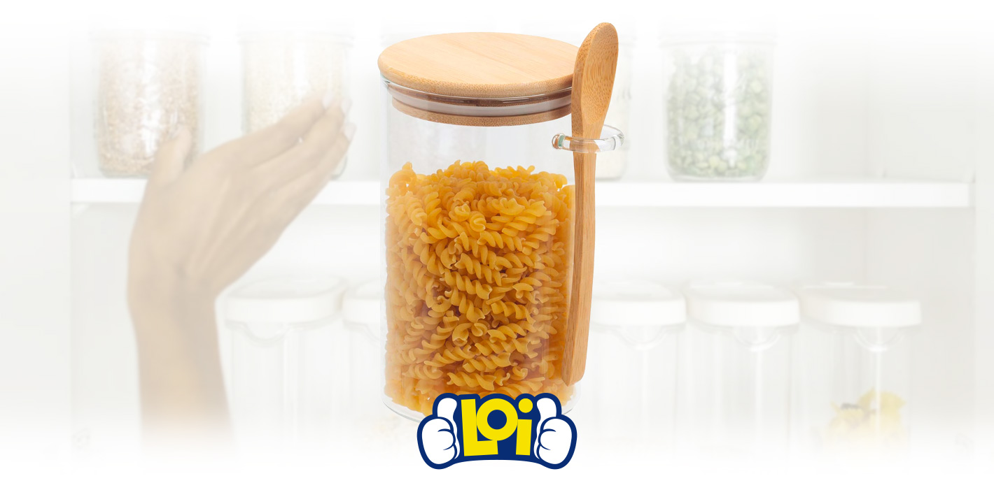 Recipiente Multiuso de Vidrio con Tapa y Cuchara de Bambú - 10 x 15cm