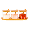 Este set para condimentos de 3 piezas es el complemento perfecto para tu cocina. Fabricados en vidrio de borosilicato, garantizan la frescura de tus especias mientras que las tapas de bambú le dan un toque elegante. La bandeja de bambú con ranuras sostiene los frascos de forma segura, manteniendo tu cocina limpia y organizada. Además, cada frasco viene con su propia cuchara de bambú, lo que te permite utilizar las especias sin necesidad de mezclarlas.
