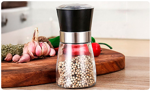 Molinillo de Vidrio con Tapa, Núcleo de Cerámica y Molienda Ajustable, Capacidad 200g
