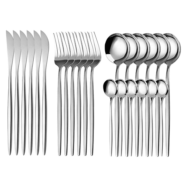 Con un diseño contemporáneo y un acabado tipo espejo que realza cualquier mesa, este set de cubiertos de 24 piezas es ideal para quienes buscan funcionalidad sin renunciar a la elegancia. Fabricado en acero inoxidable de alta calidad, resistente a la oxidación y corrosión, garantiza durabilidad incluso con uso frecuente. Sus mangos lisos, junto a los bordes alisados, brindan comodidad en cada uso. Incluye todo lo necesario para 6 comensales: 6 cuchillos, 6 tenedores, 6 cucharas y 6 cucharas de té.Podés canjear este artículo usando tus Metros OCA