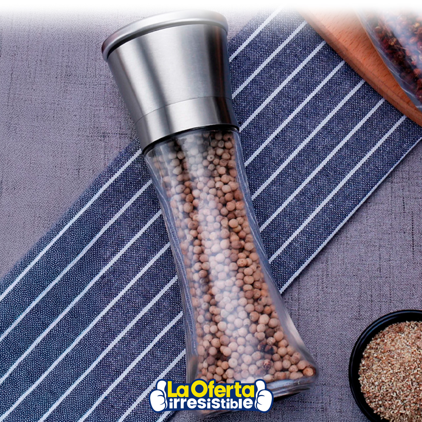 Este pimentero manual combina materiales de alta calidad como el acero inoxidable y vidrio grueso que garantizan durabilidad, resistencia y un estilo moderno que realza cualquier mesa o cocina. Su mecanismo de molienda ajustable permite seleccionar distintos niveles de grosor, adaptándose a tus preferencias para sazonar con precisión. Ideal para moler pimienta, sal marina, comino y una amplia variedad de especias. Un accesorio práctico, duradero y sofisticado que aporta un toque gourmet a cada preparación.Podés canjear este artículo usando tus Metros OCA