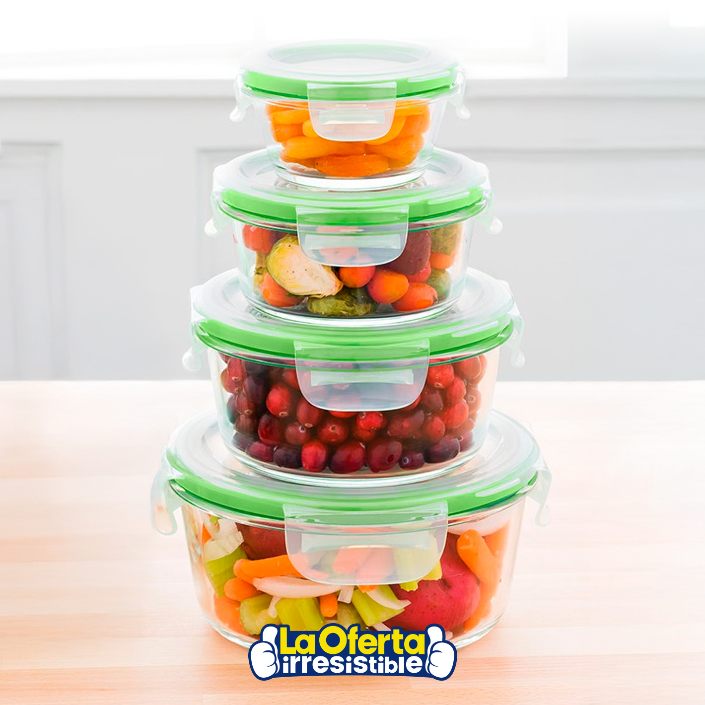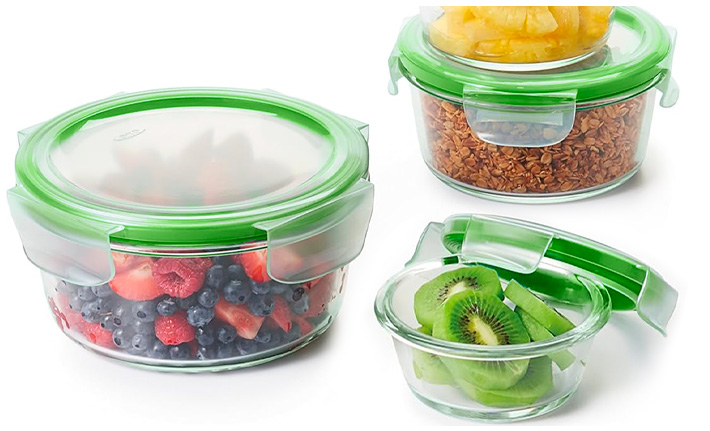 Set de 4 Recipientes CROiX Redondos de Vidrio con Tapa de Cierre Hermético y Válvula de Ventilación