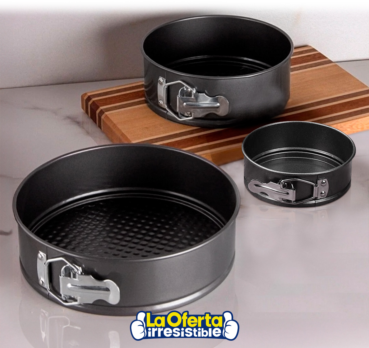 El Set de 3 Asaderas Desmontables en acero al carbono son el complemento perfecto para tu cocina. Fabricadas con un material no reactivo, son seguras de usar y garantizan la calidad de tus alimentos. Su diseño multifuncional las hace ideales para hornear, asar y cocinar una variedad de platos. El tipo de base antiadherente de panal asegura que tus comidas no se peguen y se cocinen de manera uniforme. Además, su practicidad se ve potenciada por las hebillas laterales que facilitan su manipulación y brindan seguridad en todo momento.