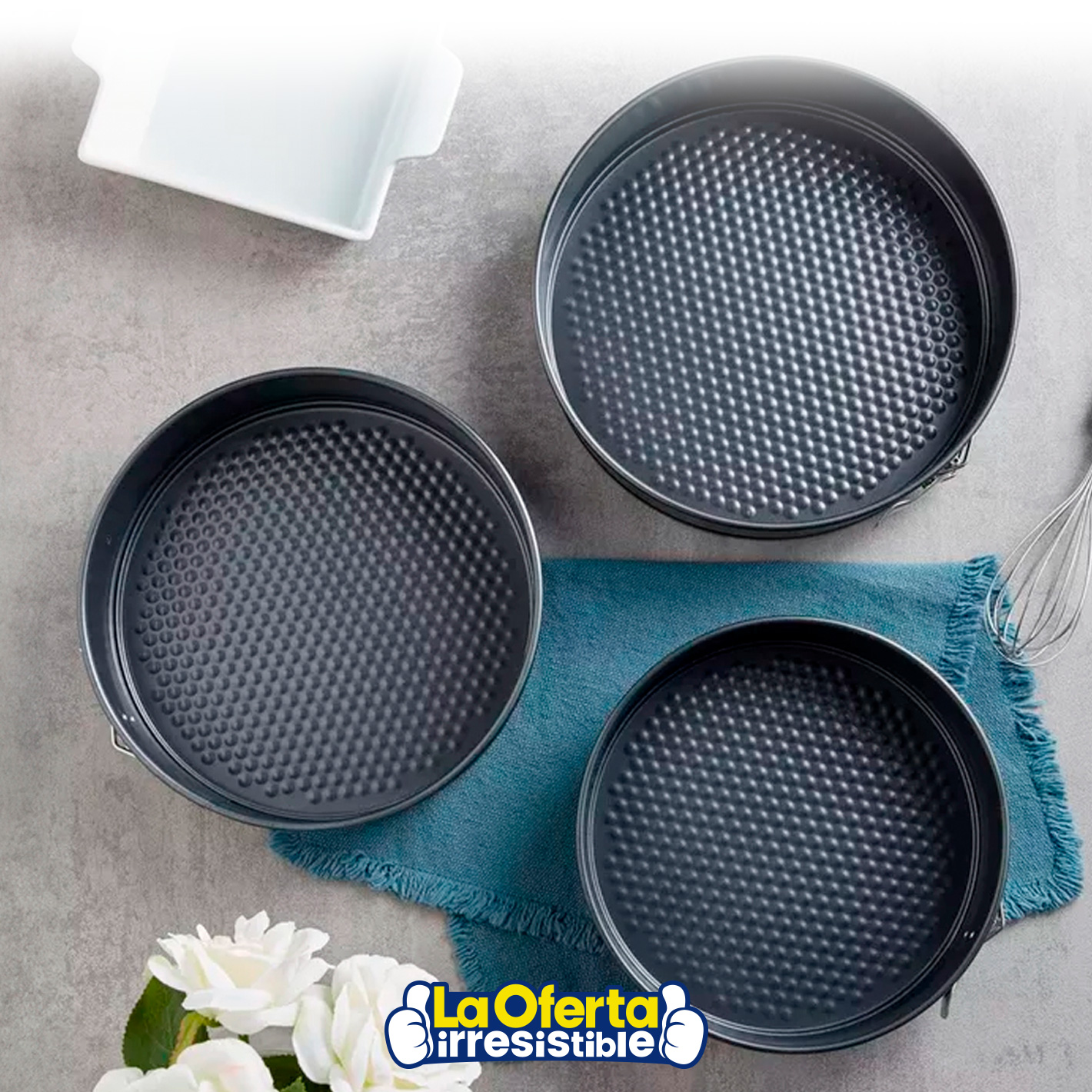 El Set de Asaderas Desmontables en acero al carbono son el complemento perfecto para tu cocina. Fabricadas con material no reactivo, son multifuncionales y cuentan con una base antiadherente de panal que asegura una cocción uniforme y sin pegajosidad. Son aptas para uso en horno, ideales para preparar una amplia variedad de tortas. Además, su diseño desmontable y hebillas laterales facilitan su manipulación y almacenamiento. Gracias a su fácil limpieza, estas asaderas no retienen ni transfieren sabores y olores, garantizando una experiencia culinaria impecable.Podés canjear este artículo usando tus Metros OCA