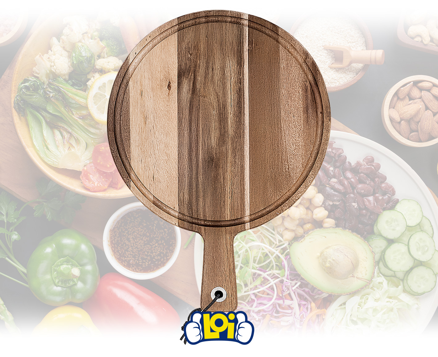 Tabla Redonda de Madera Maciza con Mango, de 40 x 30cm