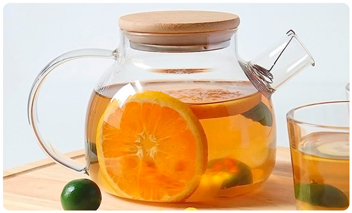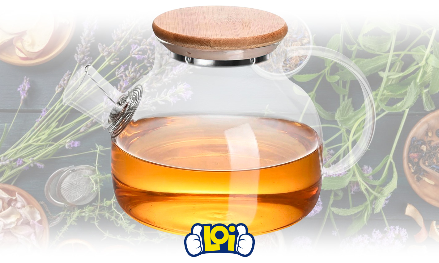 Tetera de Vidrio de Borosilicato con Tapa de Bambú, Filtro de Acero Inoxidable y 1L de Capacidad