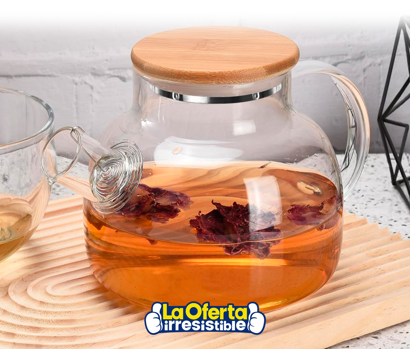 Esta tetera de vidrio con capacidad de 1L combina diseño elegante y funcionalidad en una sola pieza. Fabricada en vidrio de borosilicato de alta calidad, ofrece una excelente resistencia térmica, soportando temperaturas de -20°C a 150°C, lo que la hace ideal tanto para bebidas frías como calientes. Su boca ancha facilita la limpieza, y al ser apta para lavavajillas, brinda mayor practicidad en el uso diario. Incorpora un infusor extraíble de acero inoxidable, perfecto para preparar té en hebras, infusiones de frutas o hierbas sin residuos en la taza. Además, su tapa con detalles en bambú aporta un toque sofisticado, mientras que el mango ergonómico y el cierre hermético garantizan un vertido cómodo, seguro y sin derrames.Podés canjear este artículo usando tus Metros OCA