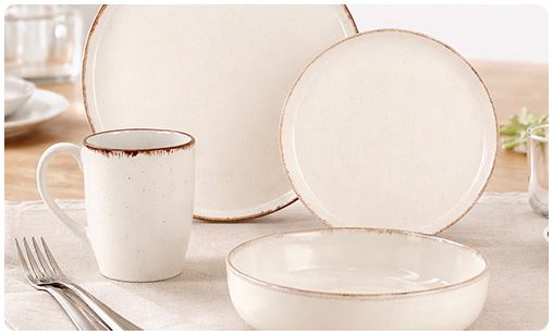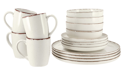 Juego de Vajilla de 16 Piezas en Cerámica Blanca con Bordes y Pintas Marrones