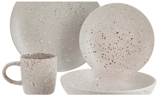 Juego de Vajilla de 16 Piezas en Cerámica Beige con Pintas