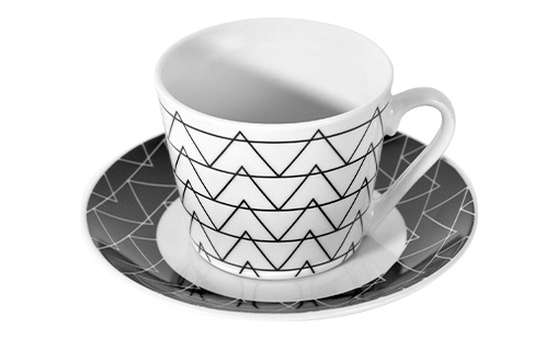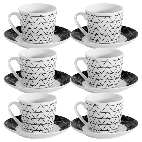 Juego de Tazas con Platos, 12 Piezas de Cerámica - Negro