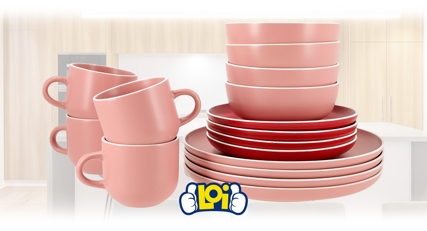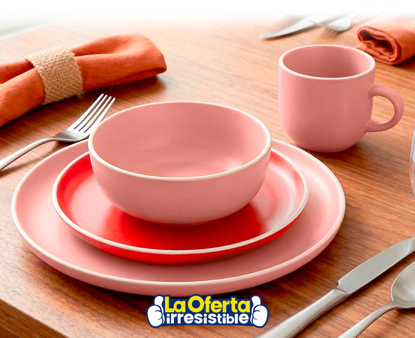 Juego de Vajilla de 16 Piezas en Cerámica Rosa
