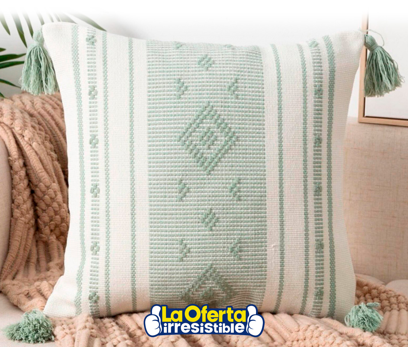 Almohadón Bruselas con Diseño Bohemio, Patrón Geométrico Tejido y Relleno de Algodón Incluido, 43 x 43cm - Gris