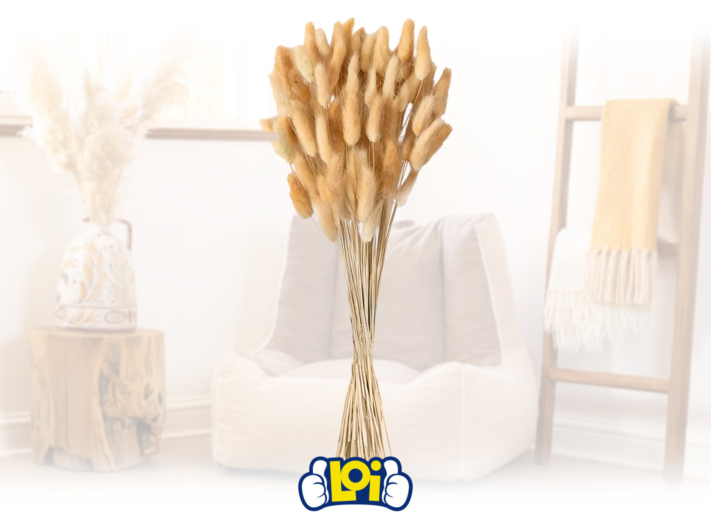 Ramo Seco Decorativo de Lagurus Natural, con Altura Total de 60cm