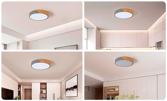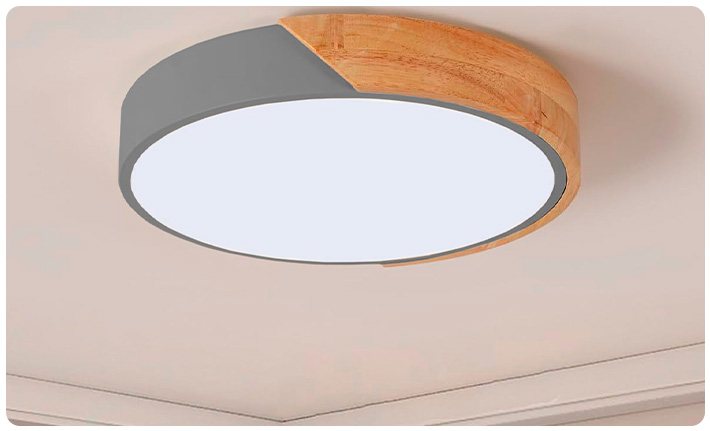 Lámpara de Techo Plafón LED 24W 30cm con Detalle en Madera Luz Fría - Gris