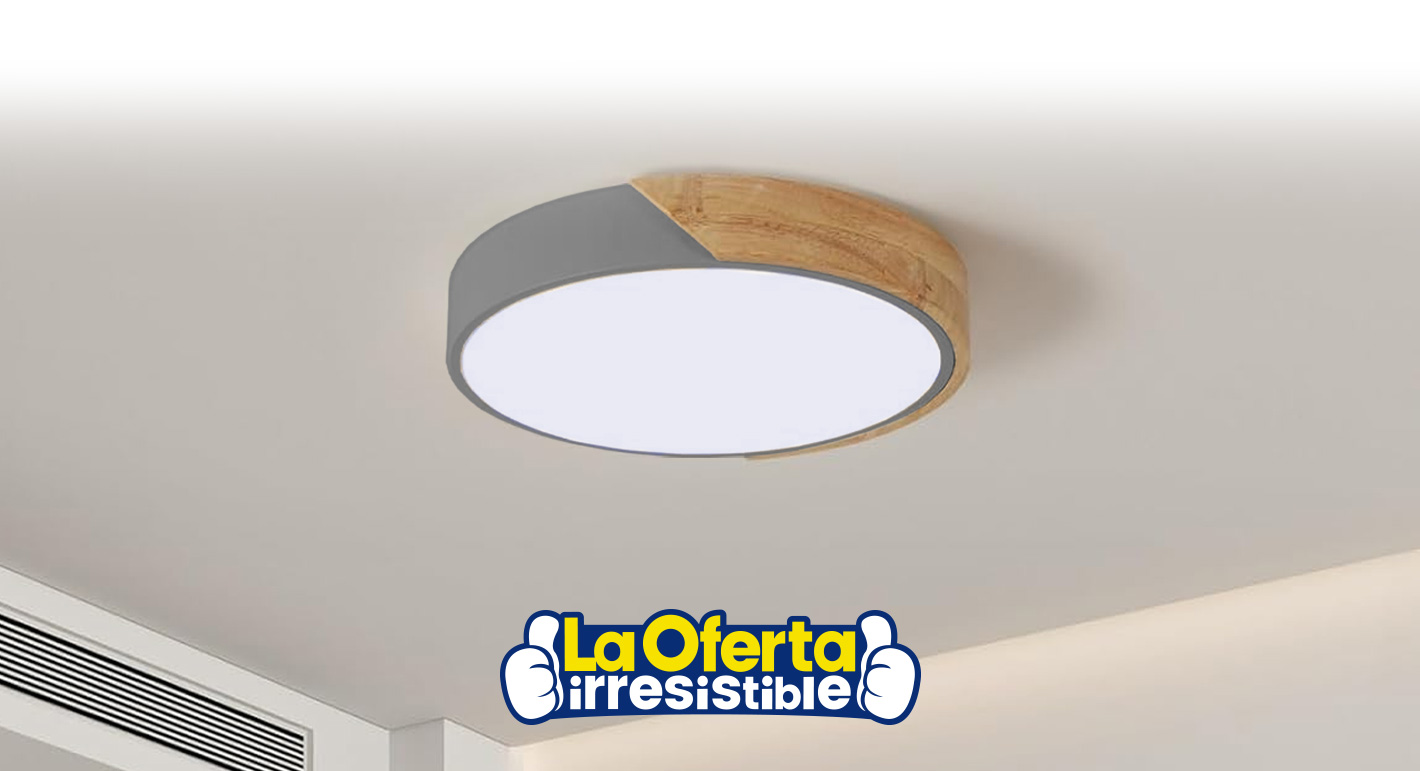 Dale vida a tu hogar con este moderno plafón LED de 24W de luz cálida. Su elegante diseño redondo con detalles de madera combina funcionalidad y estilo. Fácil de instalar gracias a su interruptor integrado para una conexión directa a la corriente y 3 orificios para montaje en el techo o en la pared.Podés canjear este artículo usando tus Metros OCA