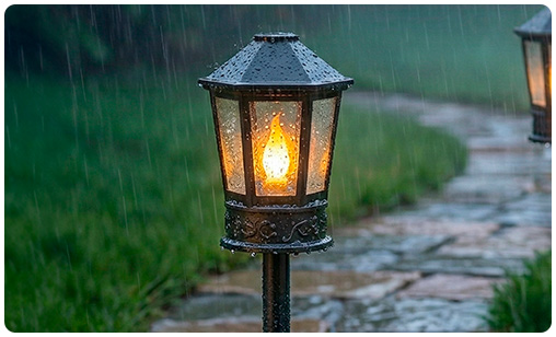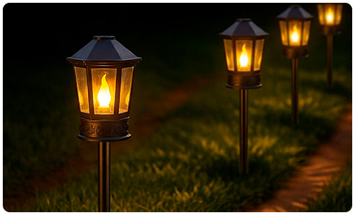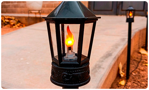 Set de 8 Antorchas LED de Jardin con Efecto Llama Parpadeante y Conexión 220V, Protección IP44
