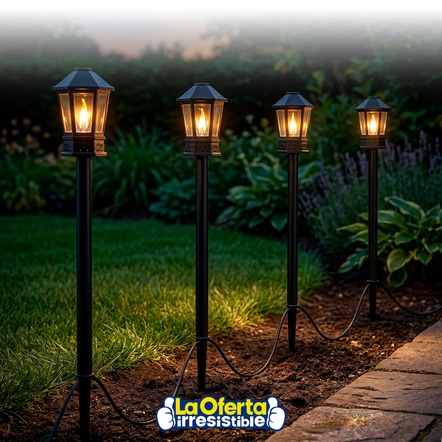 Este set de antorchas LED para jardín ofrece una solución decorativa y funcional para exteriores, con un largo total aproximado de 8 metros que permite iluminar y delimitar senderos, entradas o espacios verdes de forma continua y uniforme. Cada antorcha presenta un diseño tipo farol clásico, con estaca para fácil instalación en tierra, y emite una luz cálida con efecto llama parpadeante que simula el fuego real, creando una atmósfera acogedora y elegante. Gracias a su sistema de cableado integrado y tecnología LED de bajo consumo, todas las luces se encienden simultáneamente, garantizando practicidad y eficiencia. Además, su construcción resistente y apta para exteriores las hace ideales para uso diario, aportando seguridad, estilo y ambientación sin necesidad de mantenimiento complejo.Podés canjear este artículo usando tus Metros OCA