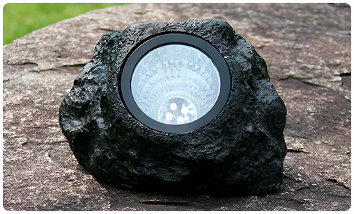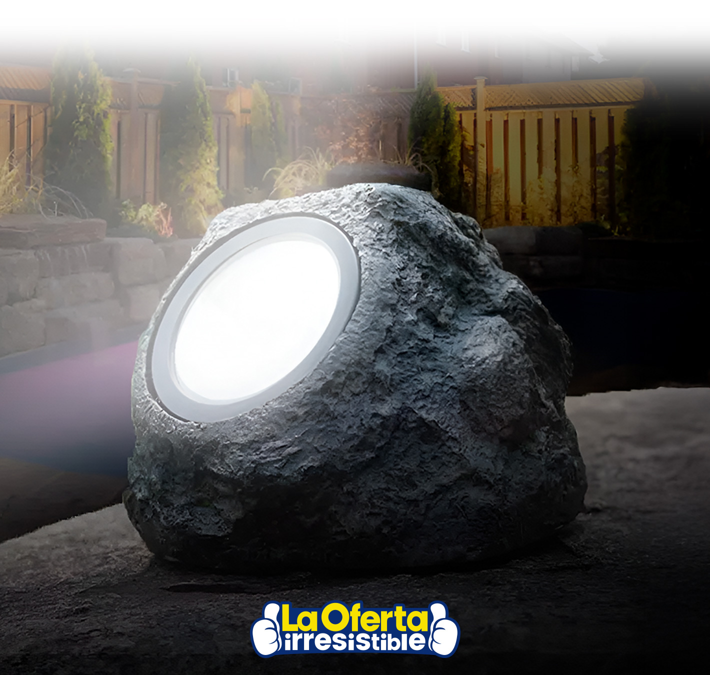 Lámpara de Jardín con Forma de Piedra, Decorativa con Luz LED Blanca, Batería Recargable, Panel Solar y Encendido Automático