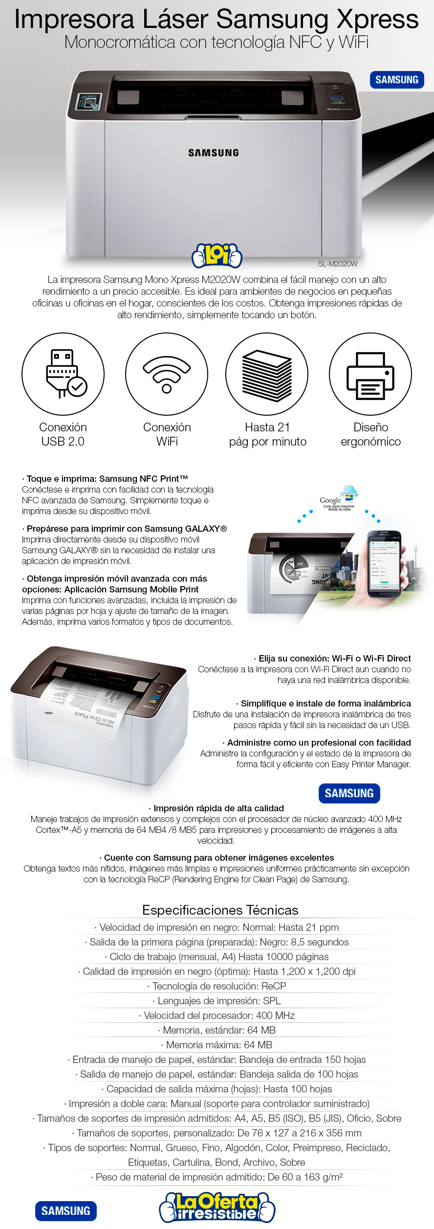 Conéctese e imprima con facilidad con la tecnología NFC avanzada de Samsung. Simplemente toque e imprima desde su dispositivo móvil.