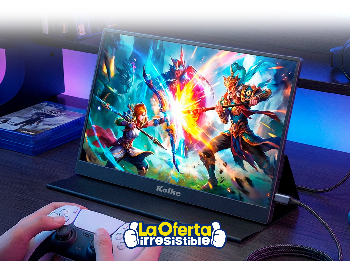 Este monitor portátil Kolke de 15.6" ofrece una pantalla Full HD IPS de 1920 x 1080 con formato 16:9, brindando imágenes nítidas y colores equilibrados en un diseño delgado y liviano. Con 60Hz de frecuencia de actualización y 30ms de respuesta es ideal como segunda pantalla para trabajo, estudio o entretenimiento. Cuenta con puertos mini HDMI y 2 USB-C compatible con protocolo PD, funcionando en modo Plug & Play sin necesidad de drivers. Incluye funda integrada y cables para una conexión sencilla a notebooks, PC, tablets, smartphones y consolas como PlayStation, Xbox o Switch, convirtiéndolo en una solución práctica y versátil para usar en cualquier lugar.